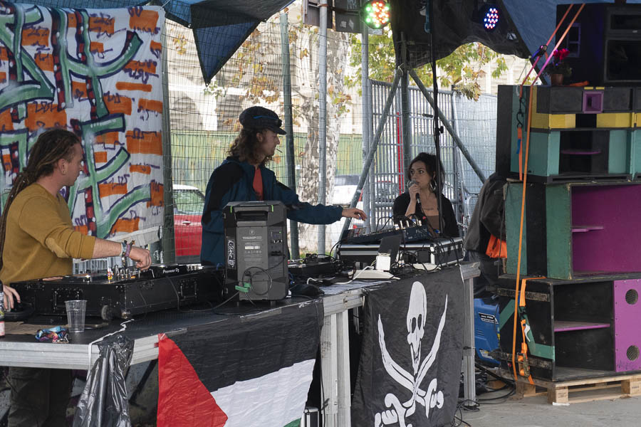 Ci piace esprimerci attraverso molti volti: esploriamo pluralità espressive che, unite al contesto di una festa, possano amplificare ancora di più alcuni temi particolarmente sensibili. E così è stato a proposito delle atroci sofferenze della popolazioni civili in Palestina e in Sudan: parole pesanti come macigni che incontrano la leggerezza di beat e suoni per tentare di rimanere impresse nelle orecchie e nelle coscienze sia di chi era sotto cassa, che nei pressi del sound system.
